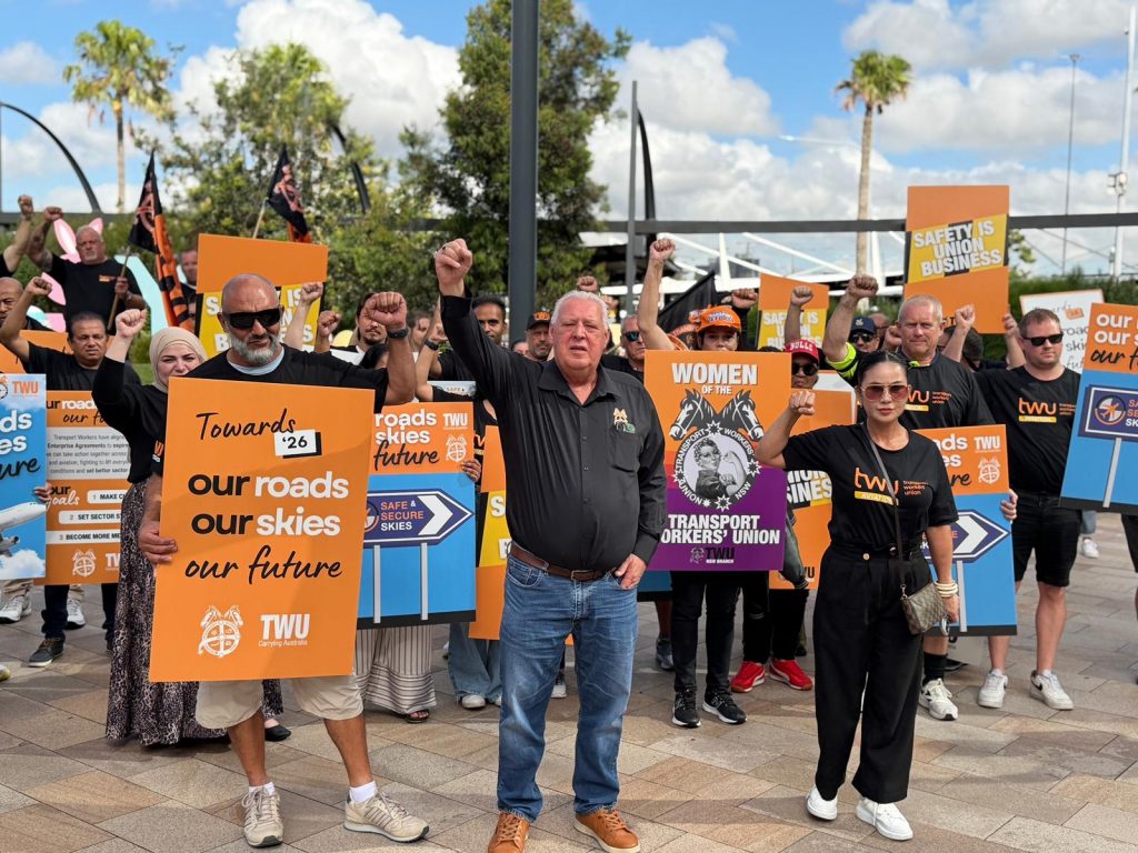 | This week, members from across aviation converged on Sydney Airport to hold Swissport accountable for their anti-worker practices and abhorrent safety record. The Transport Workers’ Union took action against Swissport in airports across the country as part of the 2026 Our Roads, Our Skies, Our Future campaign to fight for minimum standards in aviation – which desperately needs a Safe and Secure Skies Commission to enforce them. |